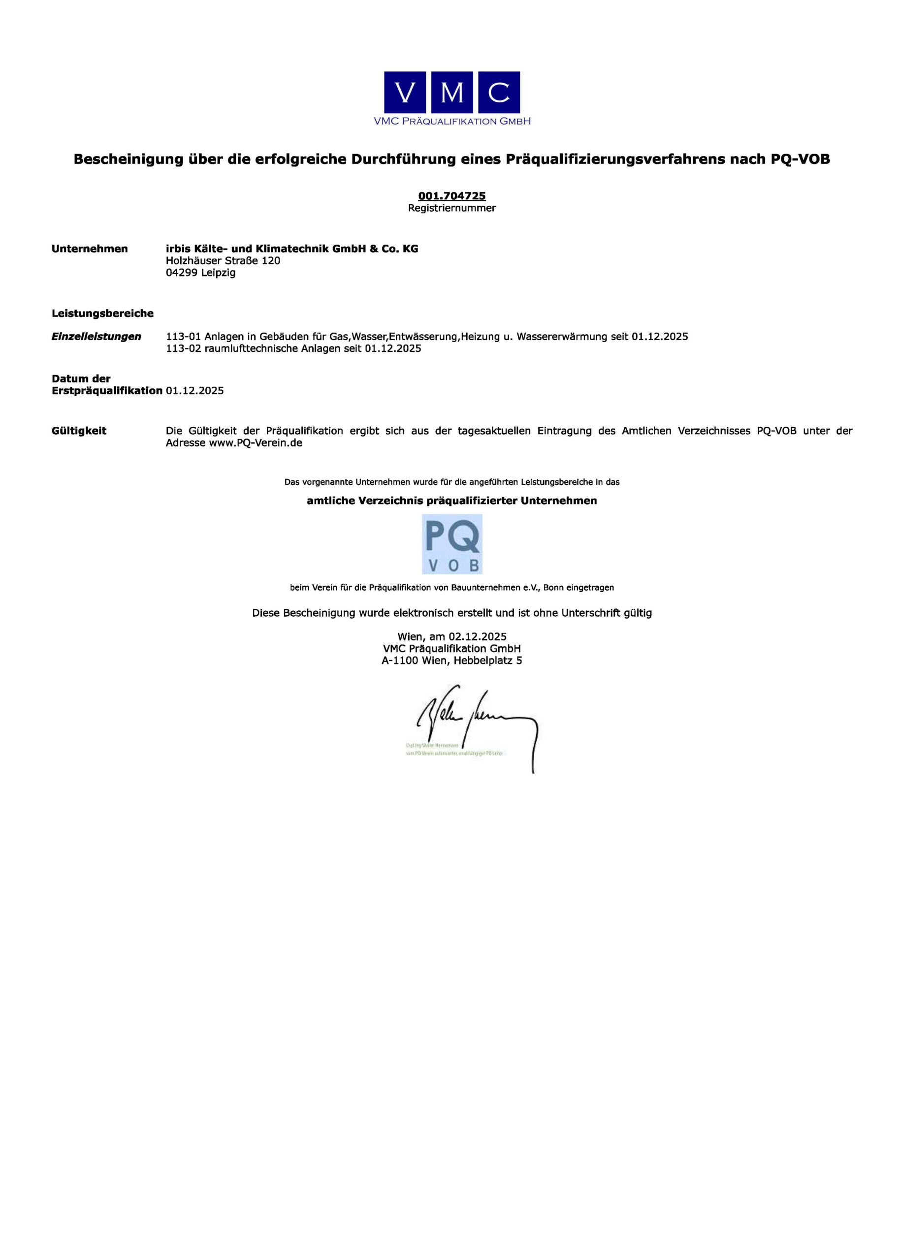 Wir sind im amtlichen Verzeichnis der präqualifizierten Bauunternehmen eingetragen.